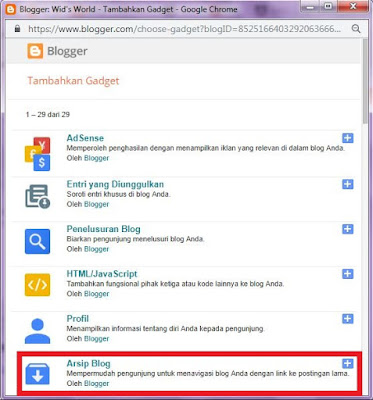2. Pada pop-up yang tampil, pilih Arsip Blog